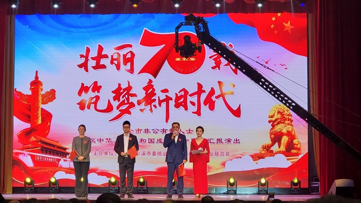 9月26日下午,由哈爾濱市委統(tǒng)戰(zhàn)部、哈爾濱市工商聯(lián)聯(lián)合舉辦的以“壯麗七十載、筑夢新時(shí)代”為主題慶祝祖國成立七十周年匯演隆重召開。省市統(tǒng)戰(zhàn)、工商聯(lián)多位領(lǐng)導(dǎo)與來自我市各行各業(yè)500位非公經(jīng)濟(jì)人士齊聚哈爾濱市友誼宮,回顧歷程,共話發(fā)展。會(huì)上,發(fā)布了“哈爾濱市民營企業(yè)制造業(yè) 50 強(qiáng) ”,東盛金屬榮譽(yù)當(dāng)選,總裁張忠凱先生與其他9位企業(yè)代表上臺(tái)接受了表彰。