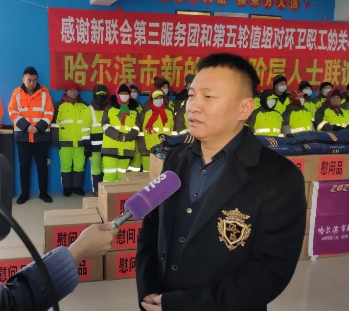 道外區(qū)副區(qū)長(zhǎng)杜平、道外區(qū)副區(qū)長(zhǎng)趙琪,市委統(tǒng)戰(zhàn)部新的社會(huì)階層人士統(tǒng)戰(zhàn)工作處處長(zhǎng)閆效峰以及市新聯(lián)會(huì)、道外區(qū)城管局的相關(guān)領(lǐng)導(dǎo)出席了今天的慰問(wèn)捐贈(zèng)活動(dòng)。