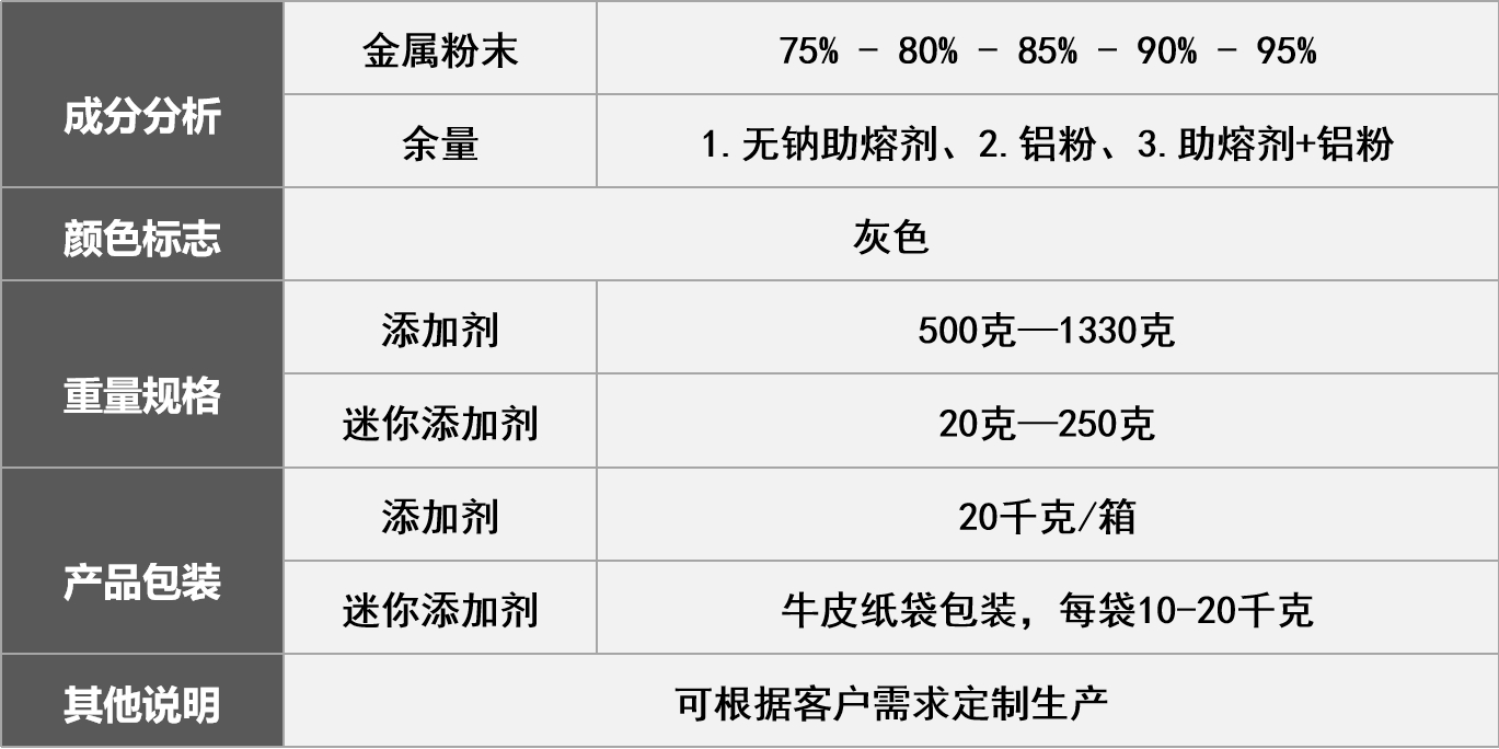 3、余量:A、無鈉助熔劑 B、鋁粉 C、助熔劑 + 鋁粉